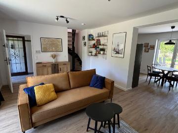 This as-new and modern house offers you everything you need for a comfortable stay on two floors. On the ground floor is the open-plan living area with a fully equipped kitchen that has all the essential kitchen utensils. Upstairs you will find a cosy sleeping area with two single beds, ideal for relaxing. The house has two bathrooms, one of which has a shower and a practical washing machine. For your convenience, there is a free car park directly in front of the house as well as free Wi-Fi. Enjoy the fresh air on the covered, furnished terrace - perfect for relaxing. Rent this beautiful house in Rangsdorf and experience modern comfort in a quiet yet well-connected location!