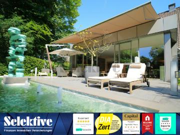 In bester und ruhiger Sackgassen-Wohnlage präsentiert sich dieses repräsentative Einfamilienhaus mit Einliegerwohnung als außergewöhnliche Immobilie für Käufer, die Großzügigkeit, Privatsphäre und vielseitige Nutzungsmöglichkeiten schätzen. Auf einem ca. 1.251 m² großen Erbpacht-Grundstück gelegen, bietet das Haus mit einer Gesamtwohnfläche von 282,8 m² ein großzügiges Wohngefühl, eingebettet in einen weitläufigen Garten mit viel Platz zur Entfaltung. Die klare Raumstruktur und die durchdachte Aufteilung machen dieses Anwesen ideal für Familien, Mehrgenerationenwohnen oder die Kombination aus Eigennutzung und Vermietung. Beim Betreten des Hauses empfängt Sie ein großer, eindrucksvoller Eingangsbereich, der mit seiner offenen Gestaltung, hohen Decken und einer prächtigen Treppe sofort imponiert. Dieser zentrale Raum verleiht dem Haus einen besonders repräsentativen Charakter und verbindet Eleganz mit Funktionalität. Von hier aus gelangen Sie in alle wesentlichen Bereiche des Erdgeschoss