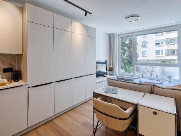This high-end, one-bedroom apartment is located in one of Munich’s most sought-after neighborhoods—super central yet quiet, thanks to its secluded courtyard setting. The subway is right outside the front door, offering excellent access to the entire city. The immediate vicinity features numerous bars, restaurants, and shopping options that perfectly complement urban living. The apartment is ideal for discerning tenants who value style, quality, and a prime location