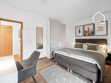 English: This fully furnished apartment in a central location in Äußere Neustadt offers you a cozy and comfortable home. Despite the lively surroundings, the apartment is quiet and has its own underground parking space directly under the building - ideal for relaxed living in the middle of the city. The apartment is fully furnished and ready for immediate occupancy, so you can move in straight away. Thanks to the excellent public transport connections, you can reach Dresden city center and other parts of the city quickly and easily. Numerous restaurants, cafés, shopping facilities and sights that make Dresden so special await you in the surrounding area. German: Diese voll möblierte Wohnung in zentraler Lage der Äußeren Neustadt bietet Ihnen ein gemütliches und komfortables Zuhause. Trotz der lebendigen Umgebung liegt die Wohnung ruhig und verfügt über einen eigenen Tiefgaragenslplatz direkt unterm Haus – ideal für entspanntes Wohnen mitten in der Stadt. Die Wohnung ist komplett aus