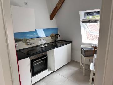 This exclusive 3-room top-floor apartment on Schützenstrasse offers the perfect place for modern city living and cozy comfort. The apartment has a large and inviting living room, perfect for socializing or relaxing. The fully equipped kitchen impresses with a panoramic window that not only provides optimal natural light, but also offers a breathtaking view. The bright bedroom invites you to relax and offers enough space for a restful night's sleep. An additional office with a workstation creates the ideal environment for productive work or creative hours. The absolute highlight of this apartment is the spacious terrace, which offers you a private oasis in the heart of the city. Here you can enjoy relaxing hours in the open air or share moments together with friends and family. Details at a glance: 3 rooms (living room, bedroom, office) Fully equipped kitchen with panoramic window Large terrace for relaxing hours Modern bathroom Close to the center and well connected Location: The apart