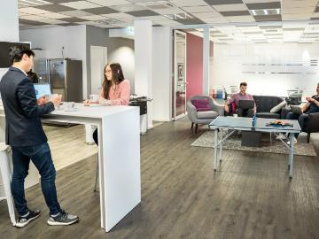 New Work im Herzen von Frankfurt Unser weiterer Standort im Zentrum der Mainmetropole liegt im renommierten Upper Westend Carree direkt am Grüneburgweg, der beliebten Lebensader von Frankfurt. Die prestigeträchtige Adresse wird vor allem für die zentrumsnahe Lage und das große kulturelle und gastronomische Angebot geschätzt. Auf insgesamt 5 Etagen mit über 4000 m² gibt es alles, was man für den modernen Arbeitsalltag braucht: moderne Bürolandschaften mit 300 Workstations, flexible Coworking Plätze, inspirierende Tagungsräume und eine faszinierende Eventfläche im Erdgeschoss. Im Eingangsbereich lädt das neue Coworking Café zum entspannten Arbeiten und zum Austausch mit anderen ein. Wer sich in seiner Pause lieber zurückziehen möchte, der findet im begrünten Innenhof einen Platz zum Relaxen.