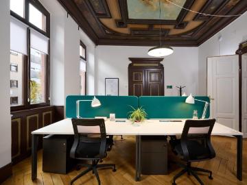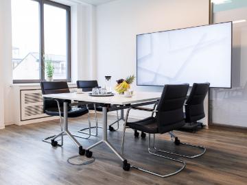 Meetingraum für bis zu 10 PersonenMeet 1 ist der ideale Raum für Meetings, Konferenzen, Workshops, Trainings und Kundentermine – modern, repräsentativ und barrierefrei. Auf 27 m² finden bis zu 10 Personen Platz und profitieren von einem Setup, das auf professionelle Termine ausgelegt ist.Ihre Vorteile auf einen Blick:- Heller, moderner Raum mit großen Fenstern- Klimatisiert und barrierefrei- Highspeed-Internet (1 Gbit) für stabile Calls, Streaming & Präsentationen- Präsentationstechnik für souveräne Termine (TV/Präsentationsbildschirm)- Moderations-Equipment für Workshops (Flipchart/Whiteboard, Moderationskoffer)- Empfang & Lounge nutzbar – professioneller erster Eindruck für Gäste- Service-Team vor Ort: Unterstützung bei Setup, Ablauf und SonderwünschenBestuhlung je nach Setup (Richtwerte):- Block/Boardroom: bis 10 Personen- U-Form: bis 8 Personen- Parlament/Klasse: bis 8 Personen- Theater: bis 10 PersonenOptional: Hochwertiges Catering (auch vegetarisch/vegan/glutenfrei) sowi