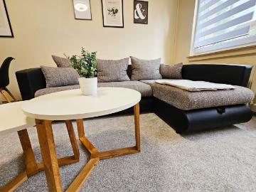 Very nice, lovingly furnished, functional and fully furnished apartment for business travelers, short vacationers and family guests, The apartment offers sleeping facilities for up to 4 people and is located on the outskirts of Weißenfels. There are numerous excursion and shopping opportunities nearby. You can go cycling or hiking on the nearby Saale. Large cities such as Leipzig and Halle can be reached in a few minutes by car or train. It is a 20-minute drive to the Geiseltalsee/port and the cathedral city of Naumburg. 5 km to the A9/A38 40 km Leipzig Halle airport, BELANTIS amusement park Apartment 50 sqm 2-room ground floor for up to 4 people large mod. complete fitted kitchen with dishwasher and dining table Large living room with TV and pull-out sofa etc. Large bedroom with 1 mod king bed Mod bright bathroom with shower/bathtub, vanity, toilet and window. Travel cot and high chairs on request. Bed linen and towels are included in the price. Shops Rewe, Sparkasse restaurant within