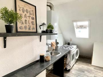 Schöne 2- Zimmer-Wohnung im Dachgeschoss. Eine kleine Küche ist vorhanden und wird zum Gebrauch überlassen. Die Innenstadt ist in wenigen Minuten fußläufig zu erreichen. Im Hinterhof können die Fahrräder abgeslt werden. Der Wohnung ist kein eigener Kellerraum zugeordnet. # Ausstattung Die Wohnung verfügt über ein Tageslichtbad mit Duschwanne. Ein Handtuchheizkörper ist vorhanden. Die Holzbalken im Wohnzimmer schaffen eine sehr gemütliche Atmosphäre. Eine Küchenzeile ist vorhanden und wird zum Gebrauch überlassen. Der Waschmaschinenanschluss ist in der Küche vorgesehen. # Weitere Angaben - Verfügbar ab: 01.05.2026 - Objektzustand: gepflegt - Qualität der Ausstattung: Standard # Lagebeschreibung Die Wohnung befindet sich in direkter Nähe zu Hannovers Innenstadt. Die Innenstadt und der Hauptbahnhof sind fußläufig innerhalb von ca. 10 Minuten zu erreichen. Sämtliche Verkehrsanbindunge