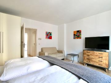 English: The apartment is 33 sqm large and modernly furnished. There is a fully equipped kitchen and a small bathroom, a brand new king size box spring bed (1.80m x 2m or 71 inches x 79 inches | 1 mattress suitable for one person or one couple), a large wardrobe and a TV as well as internet access. In case of questions or problems, I'll be available. The apartment is located in the modern centre of Cologne in the popular Belgian Quarter. The quarter offers everything you can expect from Cologne in the immediate vicinity: from the traditional brewery and exquisite restaurants to bars, nightclubs and many small individual shops. All important destinations are within walking distance and from Piusstr underground lines go to all destinations. Shopping facilities for daily needs are available in the immediate vicinity. German: Die Wohnung ist 34 qm groß und modern eingerichtet. Es gibt eine voll ausgestattete Küche und ein kleines Badezimmer. Im Zimmer steht ein großes neues Boxspringbett