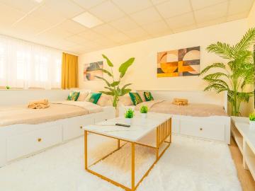 English: This bright, inviting, and comfortable 106 m² apartment is perfect for families, groups of friends, or small teams. Here, you finally have enough space to settle in, relax, and enjoy each other's company—without feeling cramped, but with a truly cozy atmosphere. The location is a real plus: shopping facilities just around the corner, the tram practically on your doorstep – and at the same time, you're wonderfully close to the Großer Garten. A parking space is included. Whether it's a walk in the countryside, a relaxed start to the day, or an evening together after a stroll through the city: everything feels easy, practical, and relaxed here. The Elbe River is also not far away – perfect for a little break by the water. Ideal for groups who want to experience Dresden together: central, comfortable, spacious – and so cozy that you'll want to stay longer. Book now and start looking forward to your stay! German: Auf 106 m² erwartet euch eine helle, einladende und komfortable Wohnu