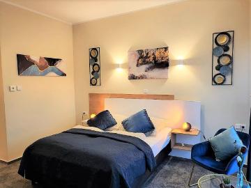 In our First-Class Apartments you live with a variety of amenities. How about a summer evening and a glass of wine on your private south-facing balcony? In our First-Class Apartments you sleep in a modern box spring bed at first-class holevel. By the way, our modern daylight bath incl. generous XL wellness shower promises special pleasure. The harmonious design of Italian tiles and beautiful contrasts makes the bathroom a real eye-catcher. Enjoy a truly central location. From our apartments you can easily reach all interesting destinations in Bad Nauheim on foot. Restaurants, 2 first-class bakeries, supermarkets, clinics, schools and kindergartens can be reached in just a few minutes. In the center of Bad Nauheim you go comfortably through the park in about 10 minutes. In the immediate vicinity is also a bus stop of the city bus in the direction of the center. The connection to Frankfurt am Main or Giessen is optimal. It takes 20 minutes by car and 30 minutes by train